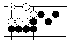 | 1の不正解変化1/ツギ。アタリになっている黒2子をツグのは失敗する。 | |