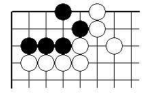 | 2/ツギ。白はダメ詰まりの形になっている。3/。4/。5で白死。 | |