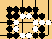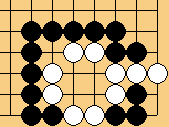 | 【隅の詰め碁例題/隅の特性の利用、黙ってダメ詰めの筋】 (黙りの筋、敵の弱点を利用する筋) |