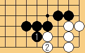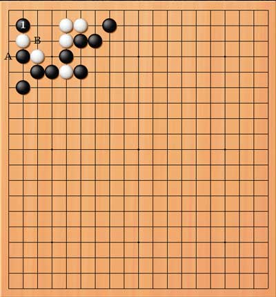 | 1/ハサミツケ(正解初手)。ここが急所となる。 | |