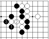 | 黒がハサミツケから3の捨て石を放ってシボれば白死となる。 | |