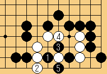 | 3/当り。4/押しハイ。5/ポン抜き。これで眼あり眼なしか花六になるので白死となる。 | |