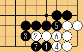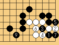 | 5/ハネ。6/オサエ。7/オキで内側(白)無条件死。 | |
