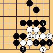 | 6/ハサミツケ。7/下がり。8/ツギ。9/ハネまで内側(白)死。 | |
