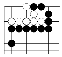 | 【隅の詰め碁例題/急所の真ん中の二線置きの筋(左右同形中央に手あり)】 | ||||