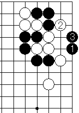 | 隅の詰め碁例題/急所の真ん中置きの筋(左右同形中央に手あり) |
