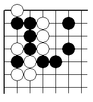 | この手が絶妙の利かしで、黒が左側の白三子を取れることになる。 | |