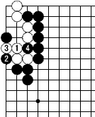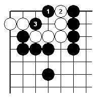 | 1で3は1に打たれて白に生きられることになる。 |