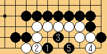 | 3/上コスミ。4/下がり。5/下コスミ。これで五目中手の死。 | |