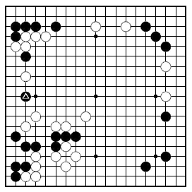 | ここで、「中盤の打ち回し攻め編/ブツカリ」を確認する。 2014.12.27日 囲碁吉拝 |