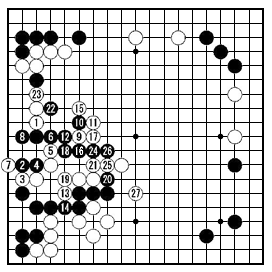 | 「小林光一の名誉棋聖への道、(1)趙治勲を下し新棋聖に」 (読売新聞 2012/02/07掲載)。 第10期棋聖戦七番勝負第5局/黒・棋聖・趙治勲、白・名人・小林光一、186手完 白中押し勝ち