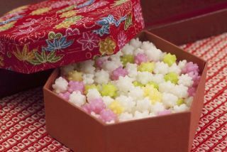 「おばあちゃん、およつ(午前十時のおやつ)おくれ」と、せがみに行くと教祖は、お手を眉(まゆ)の上あたりに翳(かざ)して、こちらをご覧になり、『ああ、「たまさん」と「おもと」か。ちょっと待ちや』と仰って、お座りになっている後ろの袋戸棚(ふくろとだな)から出して、二人の掌(てのひら)にのせて下さるのが、決まって金平糖(こんぺいとう)でした。