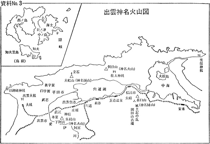 そういうことですから、「巨大なる断片である」ということです。しかも、それは単なる一般論からだけではございません。『出雲国風土記』に具体的な証拠がございます。と言いますのは、『出雲国風土記』によりますと、これはお手許の資料を見ていただければわかります。No.3の資料ですが、神名火山というものが四つございます。その一つが皆さんご存じの仏経山なんです。その麓の神庭(かんば)から今回出てきた。ところがもう一つの神名火山。つまり佐太神杜のところにある神名火山。ここの北隣りのところの志谷奥から今回と全く同型のものが六本出た。ということは、この四つの神名火山からはまだまだ出る可能性があります。わたしは、この神名火山は、仏経山の近辺の人が仏経山という神名火山だけを信仰していて、あとの神名火山は知らん、というものではないと思う。つまり、四つの神名火山がワンセットになって、その神名火山群に対する古代信仰が存在した。つまり、これは古代信仰圏です。こう考えるわけです。 これを一つの仏経山神名火山を信仰し、ほかは全く知らなかったという、そんな状況を想定するほうが、わたしは不自然だと思います。ということは、先ほど言いましたように、あの四つの神名火山からまだまだ出る可能性がある。それと銅鐸の件も、去年の八月の終り頃に現地の教育委員会の方に、「銅鐸がこの辺からきっと出ますから気をつけて下さい」と言ったのです。そうしましたら、「いや、出ればいいのですが、せめて土器でも見つけたいと思っています」と言っておられた。 それからこれも変な話ですが、確か先週の土曜日でしたか、大阪の朝日カルチャーセンターというところで、毎月講演をやっているのですが、そこでこの問題に触れました。あの荒神谷からも銅鐸が出るはずだとのべ、「うんと近くから出るはずですよ」ということを講演で申したのです。その講演が終って、別の写真をちょっと見せてもらうために下の朝日新聞の編集部へ行ったところ、担当の方(高橋さん)が「古田さん、銅鐸が出ました」と言われるわけです。「どこから」とわたし。「荒神谷からですよ」。そこで翌日(七月二十一日付)の新聞を見せてもらったのですが、そこに大きく書かれていました。三百五十八本の出た、すぐそのそばです。 あとで、その前の講演を聞いていた人が「古田さんはそのニュースを知っていたのではないのですか」と言われたぐらいなのです。タイミングがよすぎるというか、予見が早く当りすぎた、という感じですが、これは別に不思議なことではございません。事の性格を追っていけば、時代と地域性において共通の性格をもっている志谷奥で銅鐸が出たことを思えば、今回の荒神谷で出ない方がおかしい。ですから、道理に従って予言しただけであって、決して超能力などというものではございません。そういう目から見まして、わたしはまだまだ出ると思います。これから、銅鐸もまだまだ出ます。(後記 ーーこれも、この翌月〈八月〉、四個の銅鐸が出土、計六個となって、さらに“予言的中”となった)そのほかの神名火山からも出ます。わたしはそう思っています。 ということで、まさに「巨大なる断片」に過ぎないと考えます。しかも、そういう巨大な古代信仰圏というものがいつ成立したかというと、わたしは弥生時代ではないと思うんです。もちろん、今回の三百五十八本や銅鐸などは弥生時代ですよ。しかし、弥生時代にポーンと初めて新しくそういう信仰圏が生まれたのではないと思う。それは縄文期に淵源する古代信仰圏であると、わたしは思うんです。 なぜか。それは今の四つの神名火山の一つ、大船山の近くに、立石という部落があります。ここにわたしは去年八月末に行きました。そうすると、そこには四軒のお宅がある。麓では六軒あると初め聞いていたんですが、到着してみると四軒です。つまり、家はあったんですが、おじいさん、おばあさんばかりだから、結局二軒はもはやいらっしゃらないのでしょう。 おじいさんに案内していただき、竹藪のずっと奥の方に、回り回って、ポッと穴があいておりました。そこから入ったんですが、巨大な石神がありました。それが奥に一つ、両側に二つ半。その前に小さな広場があったわけです。思わず驚きの声をあげました。わたしは本当に無信仰な人問ですけれども、思わずそこに跪(ひざまず)きたくなったような雰囲気です。まさにこれは古代巨石信仰が本当に荘厳な姿で現存している。そして祀りつづけられているという感じを受けました。 わたしがなぜそこを目指したかというと、『出雲国風土記』で「大船山神名火山のそばに大きな石神がある、小さな石神が百余りある」と書いてあるんです。それでもしやと思って行ったんです。そこで、今もお祀りしているんです。(後記 ーー立石・庄部(しょうぶ)・田ノ戸・黒目繁田(くろめしぎた)の四十軒の家々が北組と南組に分れ、