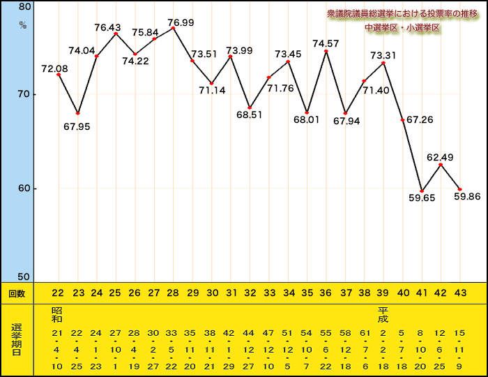 | 【衆院選に於ける投票率の推移 】 | ||||||||||||||||||||||||||||||||||||||||||||||||||||||||||||||||||||||||||||||||||||||||||||||||||||||||||||||||||||||||||||||||||||
